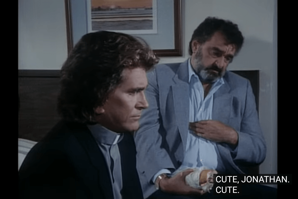 Now, it’s unclear whether it happened during this episode, because it’s not the first time (nor the last time) that Jonathan dresses up as a minister. But, considering that in most of the episodes where he appears as a priest he’s one juts for a couple of scenes, while now he does most of the time, it might as well have occurred for this show.