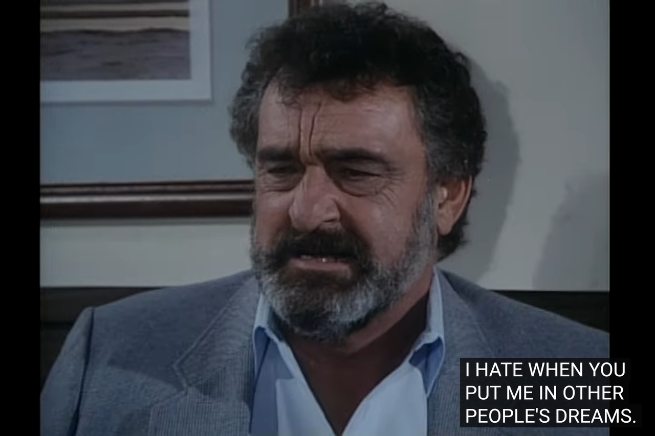 Highway Actors: the episode marks the first appearance of a new Highway actor, Bill Erwin as the character of Clarence, the grandpa whose dream Mark invades as part of the assignment.
