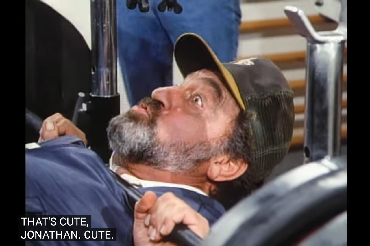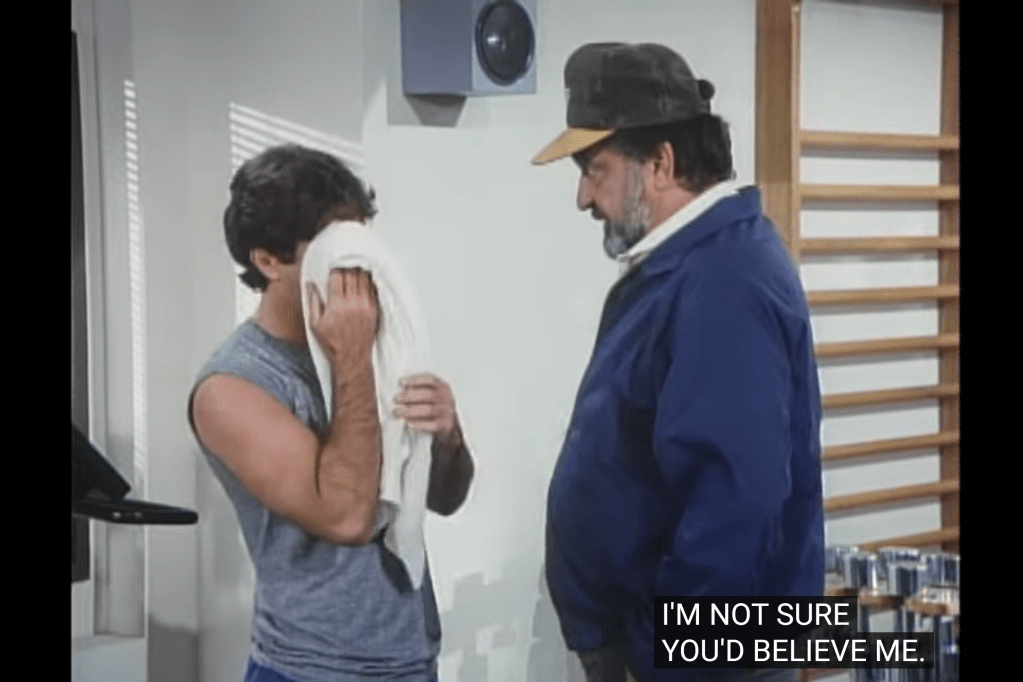 Highway Actors: this episode has a familiar actor. The subject of the assignment, Mark’s friend, is played by Joe Dorsey, who is an old Highway actor.