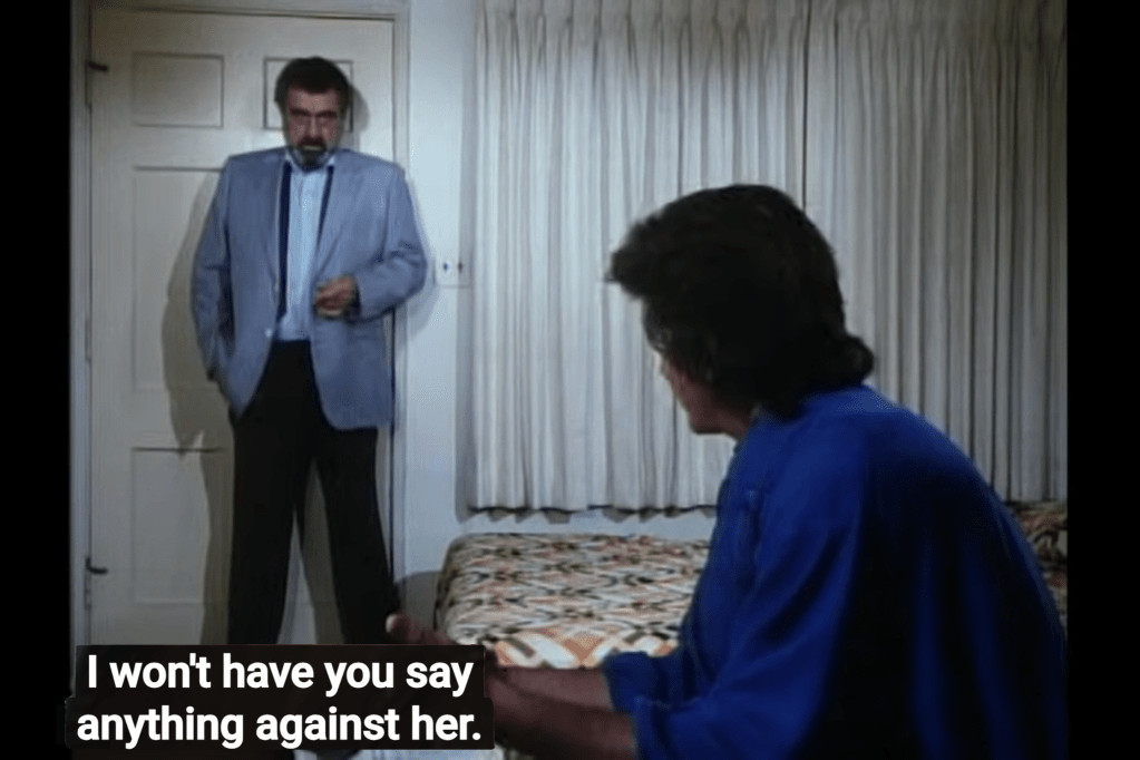 However, the Pilot establishes that Mark’s career as a cop ended five years earlier, in 1979, and that he lived with his sister afterward until 1984, when Jonathan saved him. And this episode takes place in 1986, December. So, either Jake was released at some point in the 1970s (while Mark was still working as a cop), and the club wasn’t opened immediately after his release, or—more unlikely—Mark testified for Jake despite being no longer a cop. And while struggling with alcoholism; with no one helping him.