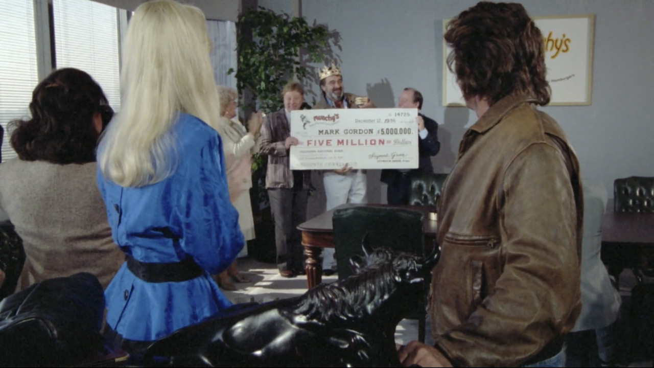Even more randomly, he happens to purchase the restaurant’s five-billionth burgers, and there’s a reward for it.