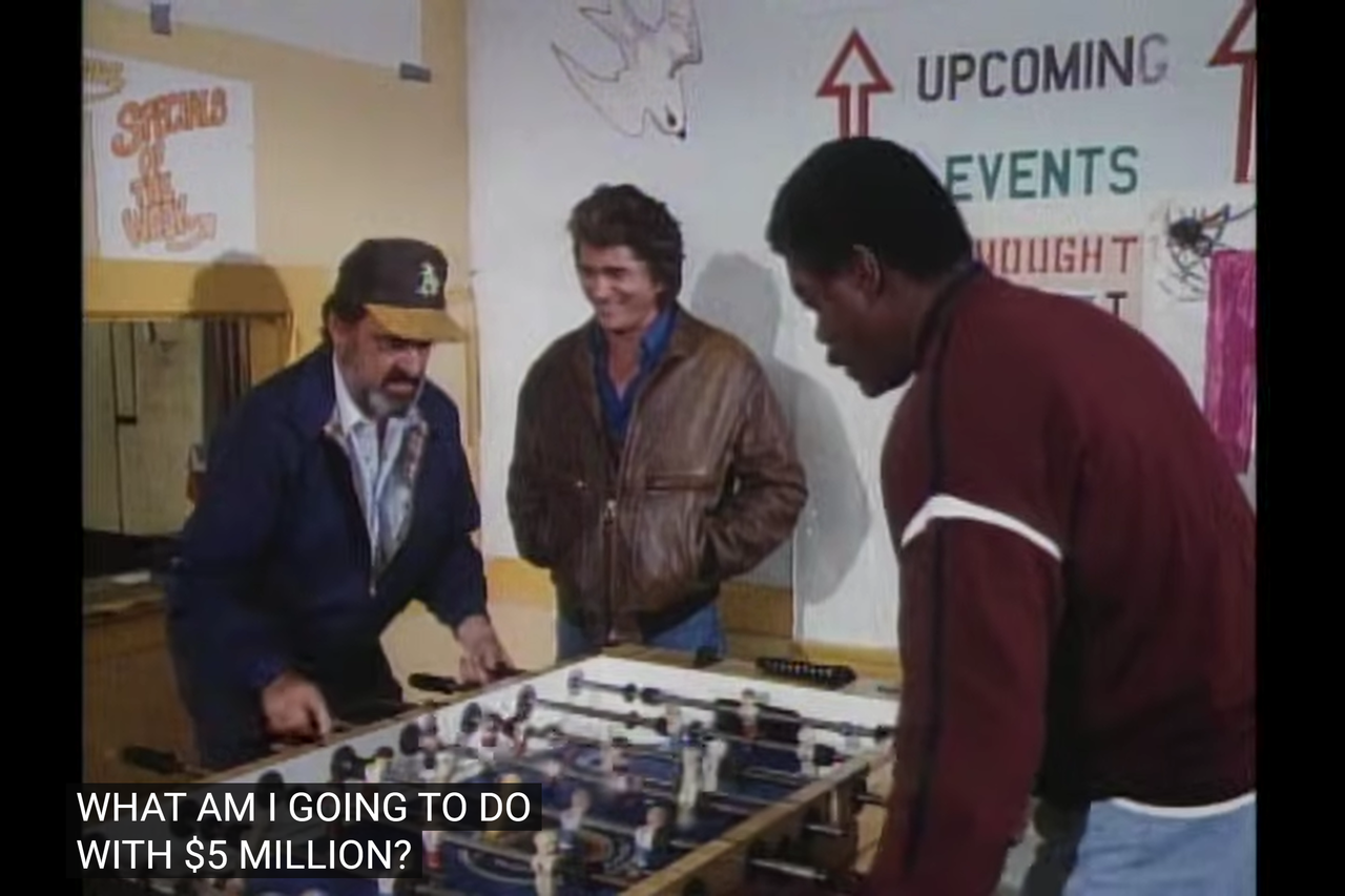 Reckless Spending: the entire episodes revolves around Mark wanting to give all his money away, to a single club — and even admits he wouldn’t know what to do with it.