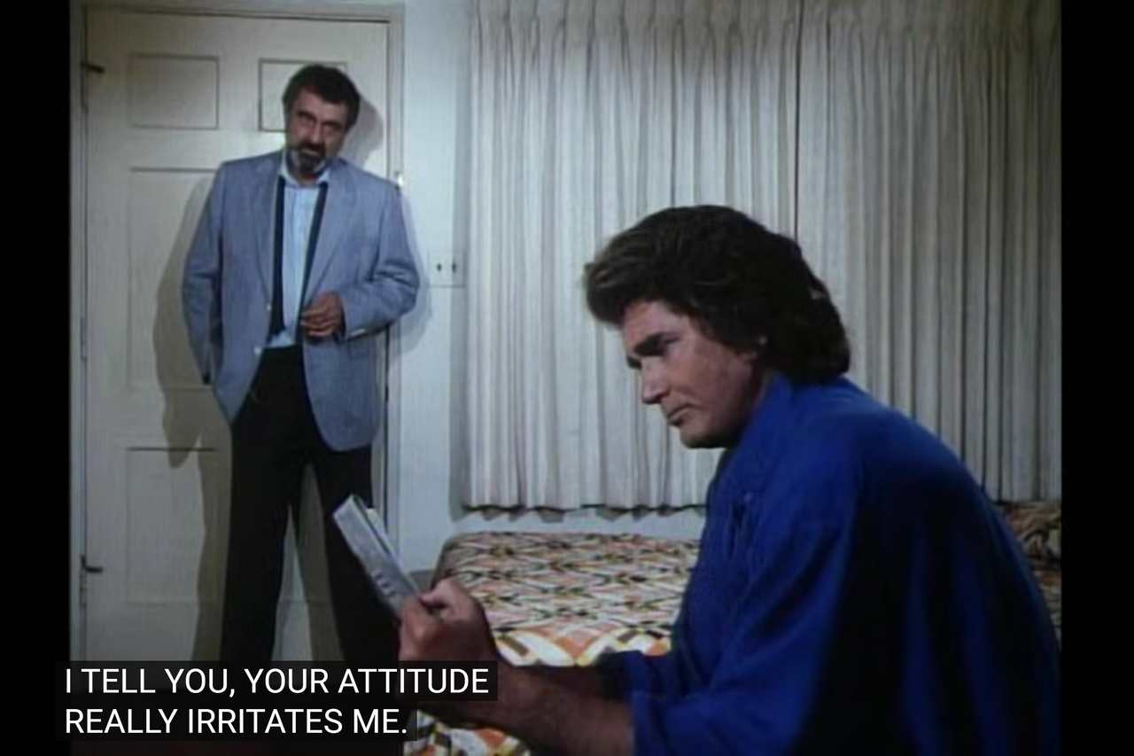 As for this episode now: Jonathan and Mark randomly visit Jake, an ex-convict whom Mark arrested years earlier. This visit has no connection to any assignment—because, in truth, there is no assignment at all. And it’s not even that Jake had some problems and decided to call Mark for some reason, like it has happened so far when Mark was randomly called by an old friend (whether from the police force, as in Love And Marriage, or from his Oakland childhood, as Man To Man); it would be rather hard to explain that (why would an ex convict decide to contact the the cop who had arrested him if there were any problems, instead of someone else like a friend). But this time, it’s not even that: it just starts with Mark going to meet him. No reason for Mark to suddenly decide to visit this random ex convict right now. What he waited so long for, had Jake contacted him or what: it’s all left unexplained, and it’s really very random.