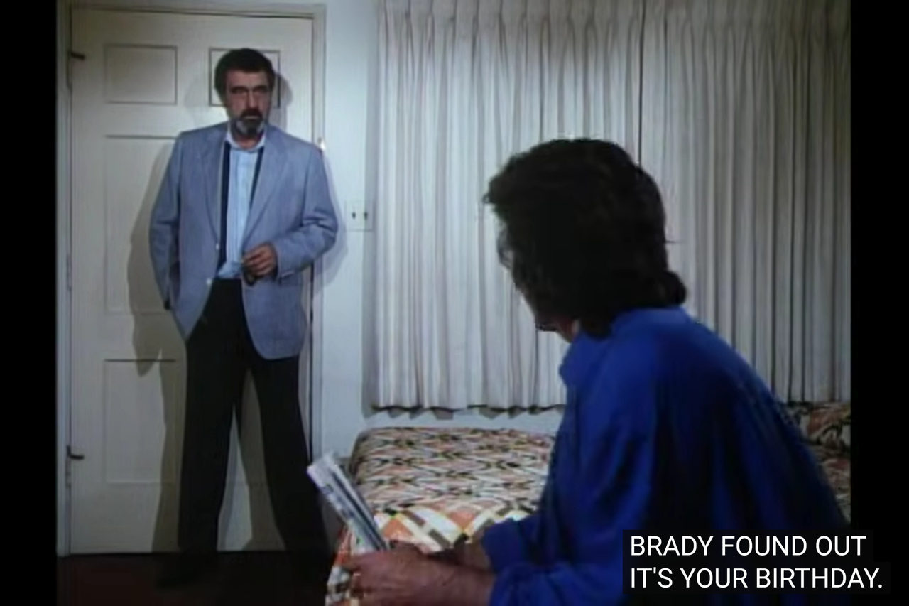 And the day of his birthday is the day he’ll get the money, which is revealed to be December 12, the following day. This, combined with the episode Going Home, Going Home in season one, which took place in 1945 (when Mark was nine), determines that Mark was born on December 12, 1936, a detail that will be confirmed in the fifth season too. So, when the series began, Mark was 47 (and turned 48 at the same time as the season one Christmas Special), then he turned 49 in season two probably during Change Of Life or The Last Assignment (both episodes are set in December 1985, even though they are not Christmas Special) and, in this episode, he’s turning 50, even though they don’t say that.