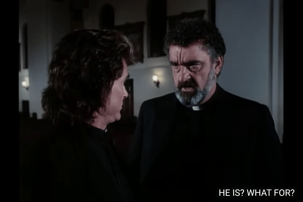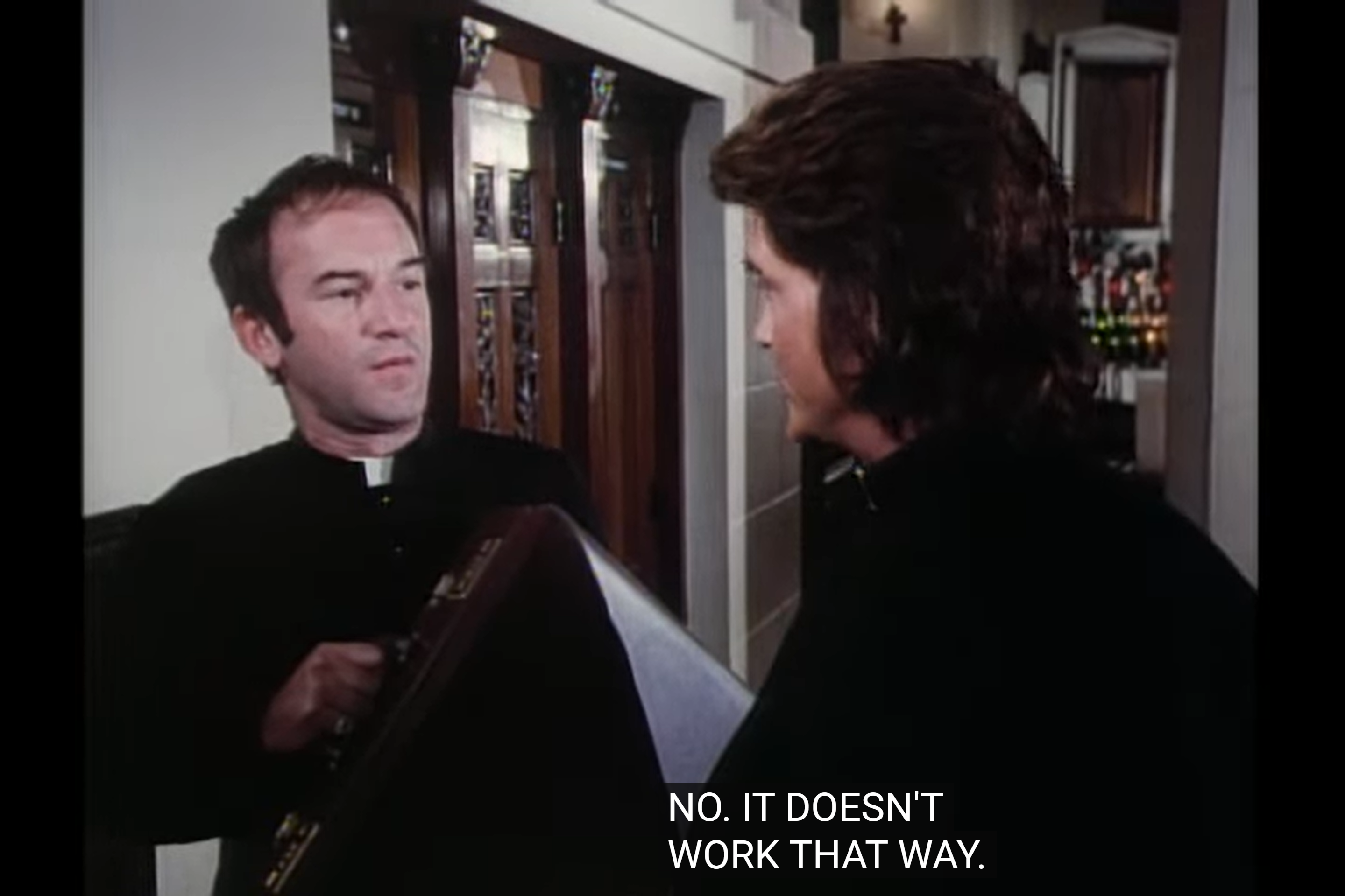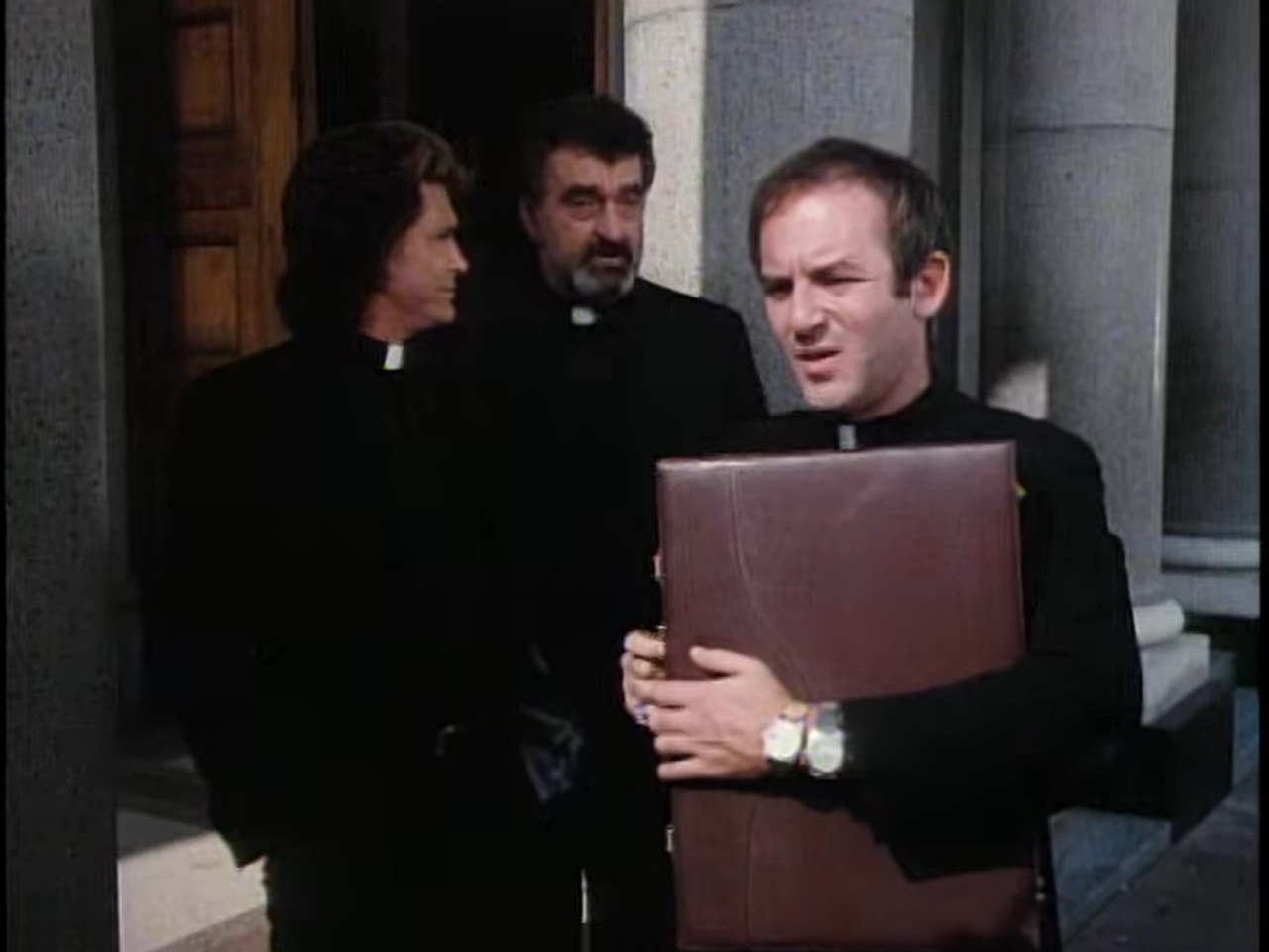 This time, unlike those episodes, Mark is also a priest, and he seems quite confident in the role, calling everyone “son”. While correctly pointing out how sacrilegious it is to fake references.