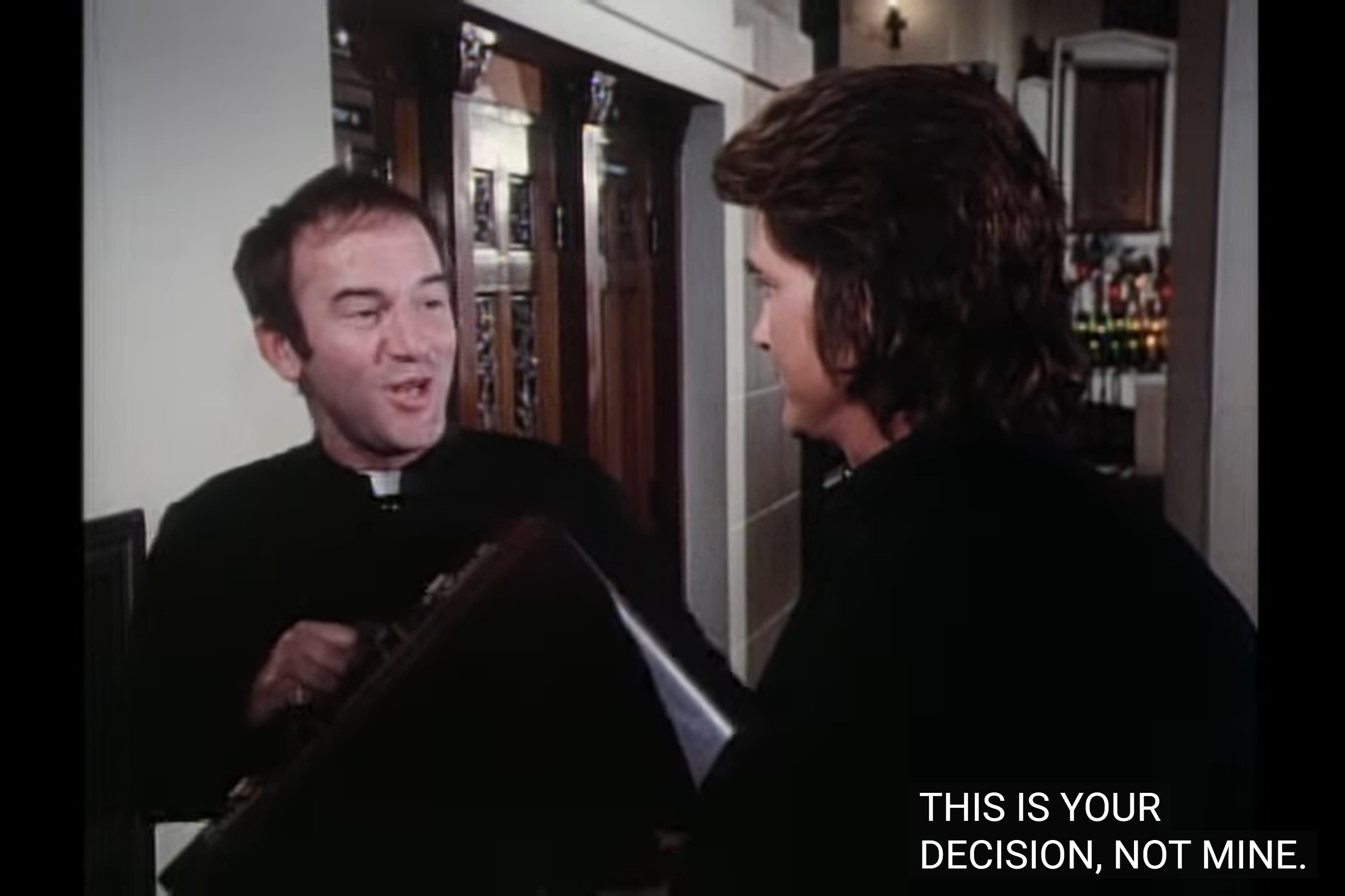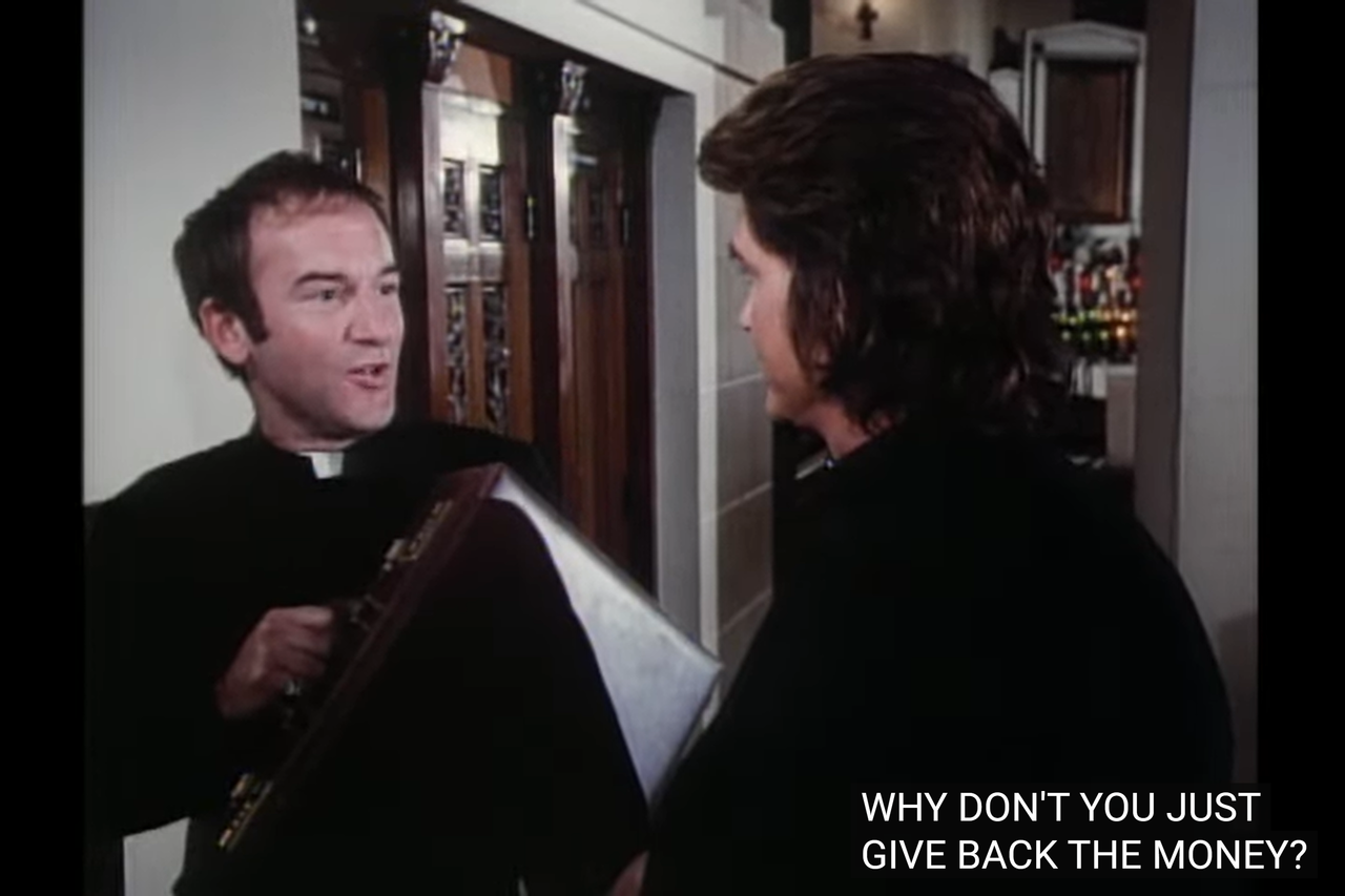 Essentially, Jonathan and Mark are disguised as priests and open an old abandoned church.