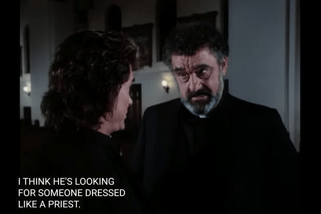 It’s difficult to determine exactly which episode it refers to, since Jonathan appears as a priest multiple times throughout the series—partially in the season one finale and The Last Assignment, and fully in The Smile in the Third Row and Love and Marriage. However, given how prominently he plays a priest in this episode, it’s plausible that this anecdote relates to it.