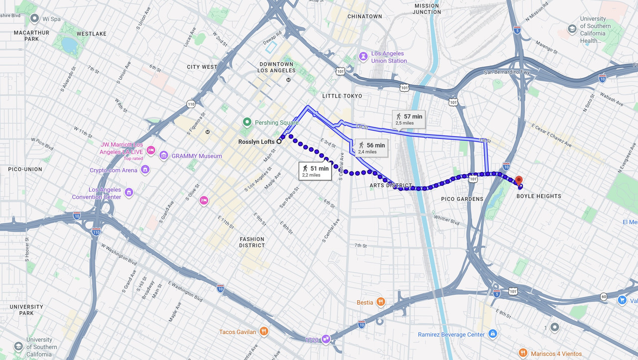 The Lofts and the church are actually 3.5 miles away, roughly a 50 minutes walk; yet, in the episode, they show Charley chased by the thugs all the way to the church, in about three minutes.