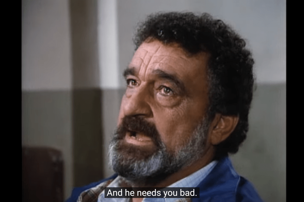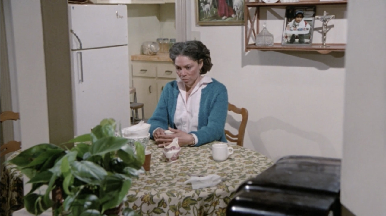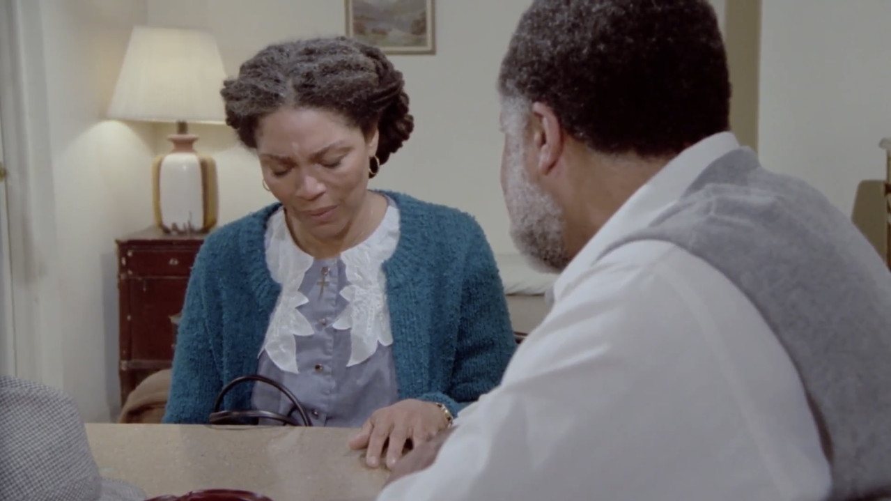 Blooper: this episode has one blooper at the conclusion, and it’s a familiar one. When the preacher breaks down crying after being left by her daughter, shortly before Gabe holds her face in his hands, there’s a shadow on the left wall.