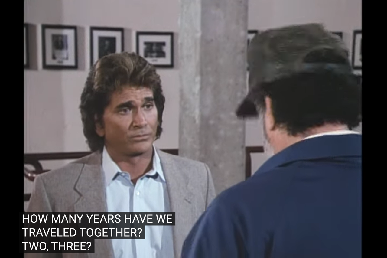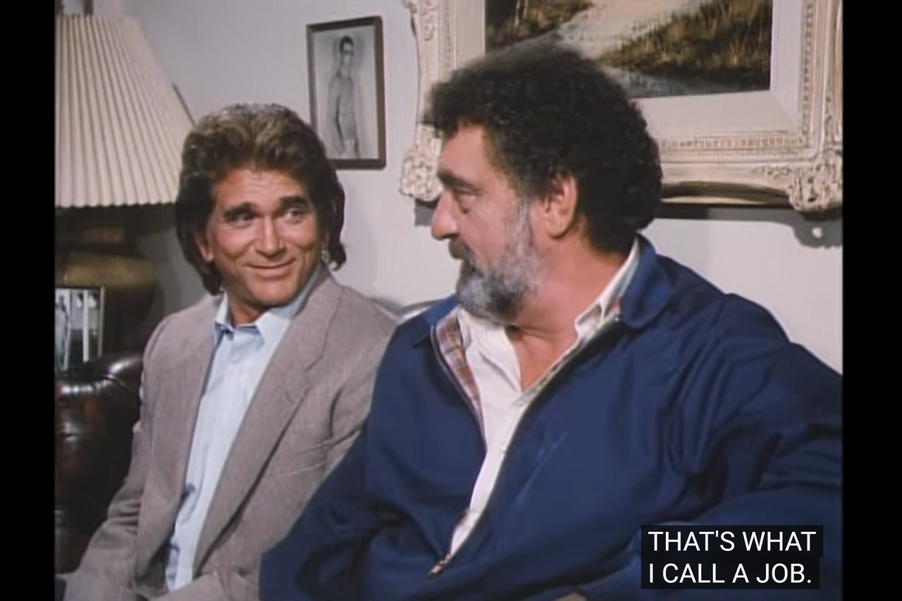 This effectively confirms they have been out there playing angels for three years, and this episode (alongside this season) takes place in 1986 and 1987, not later. That’s important, as in the episode Love And Marriage (at least in its that cold open), they were celebrating their fourth anniversary, which created some issues in the order of the series.