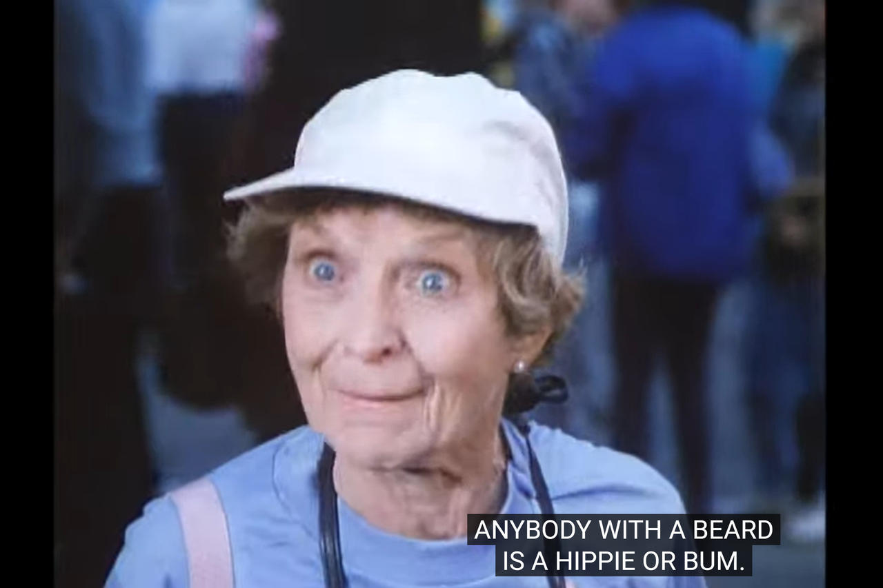 The odd part is that they use the same reasoning in both episodes—suggesting that anyone with a beard like his must be a hippie.