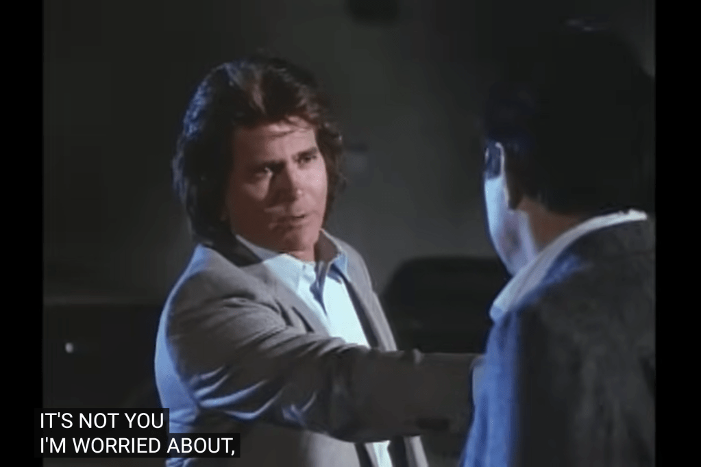 At the beginning of the episode, there’s another recycle: the Joey Chitwood stunt comes from the conclusion of The Last Assignment. That also creates a blooper: while Jonathan and Mark are in the car discussing the nuclear weapons news, the street on Mark’s window is different from the one shown the moment the car turns around.