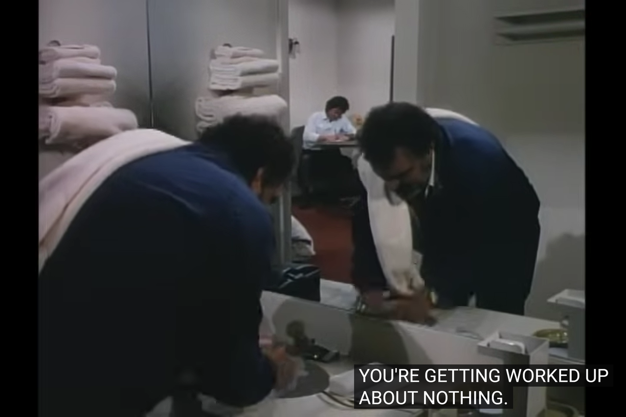 One of the few scenes in which they actually discuss about the assignment is at the conclusion: finally, Mark confesses he’s puzzled by the assignment, believing that Joe only snapped once because of his denied care, but he has no problems otherwise.