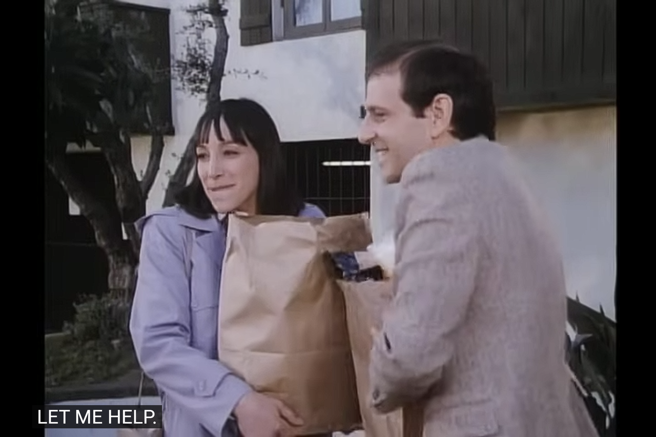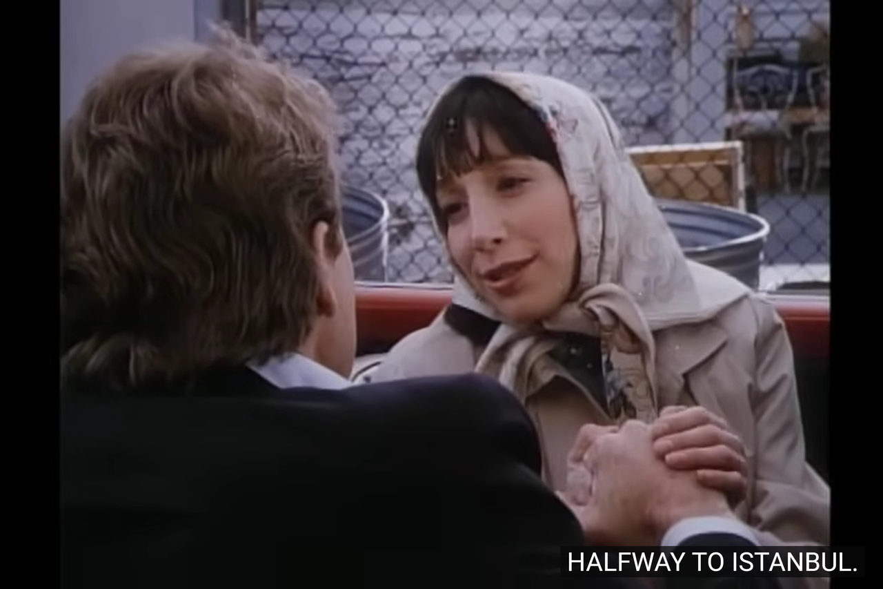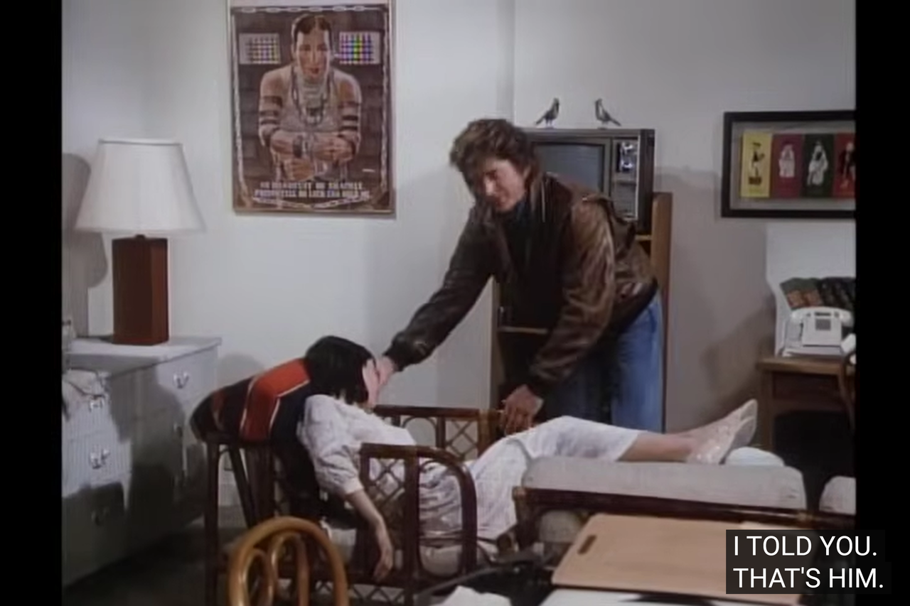 Now, two things to point out: one is that her role here is very similar to that one. In both cases she plays an idealistic, distracted, friendless woman living alone and fantasizing about meeting the man of her dreams. But maybe they are meant to be the same character. Or a reference. Or twins. Whatever.