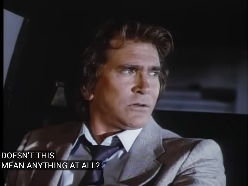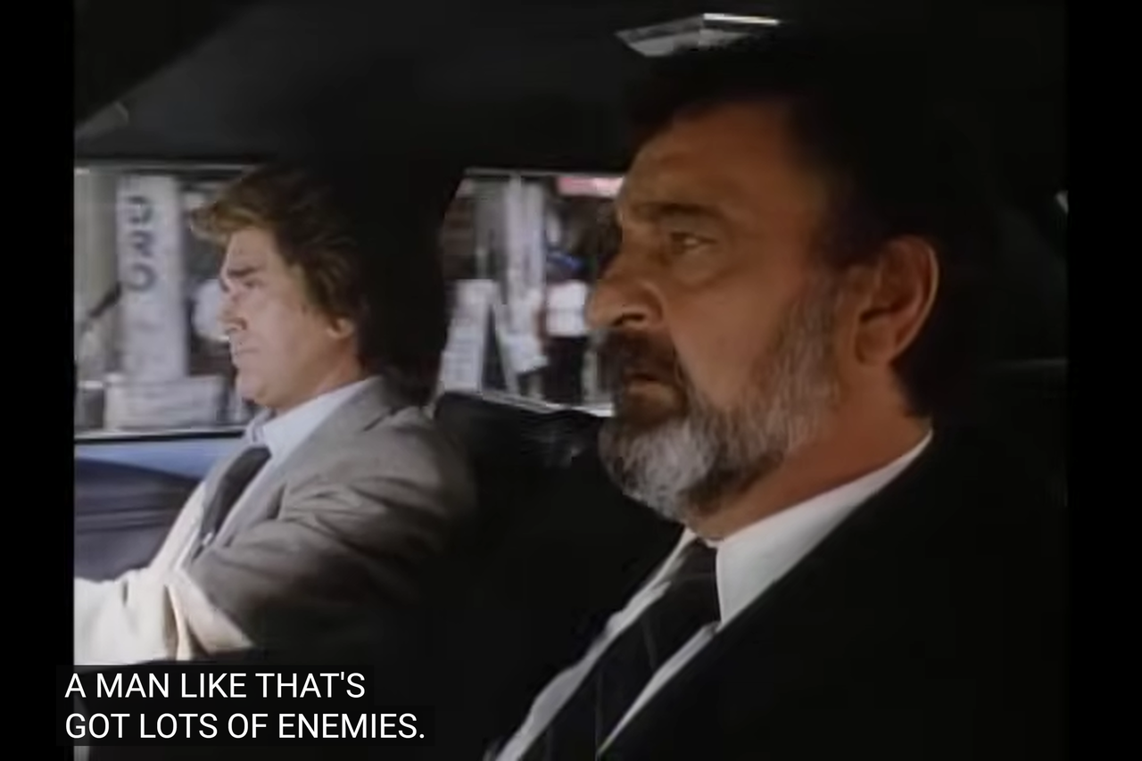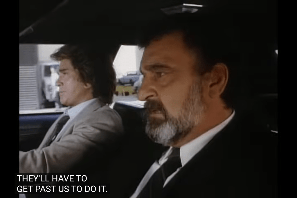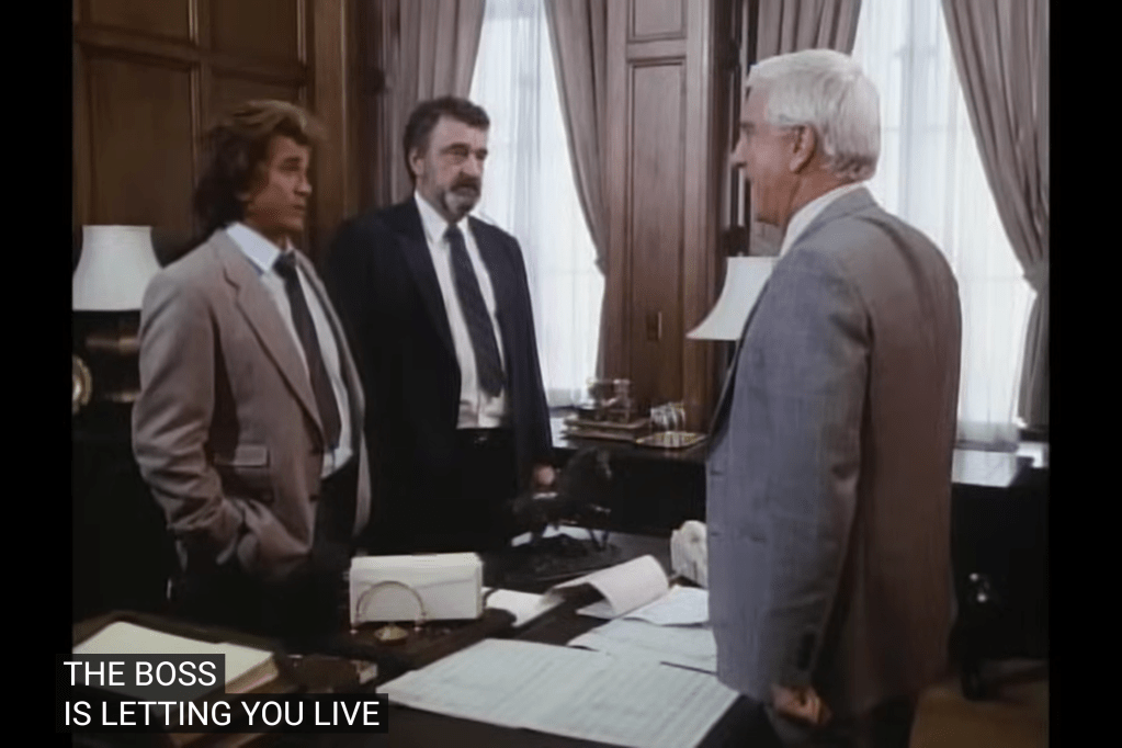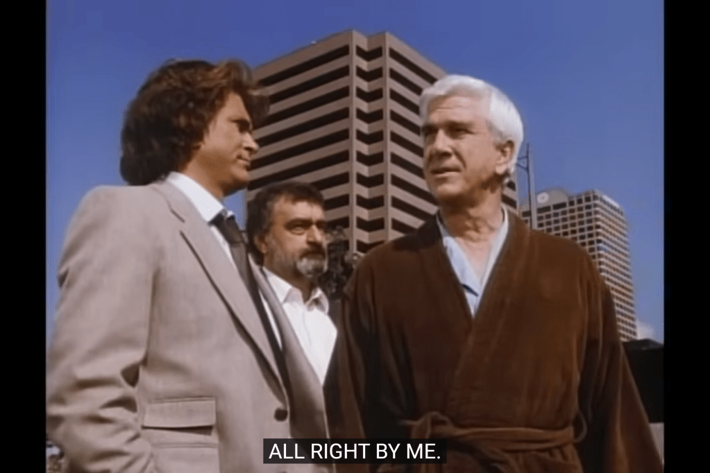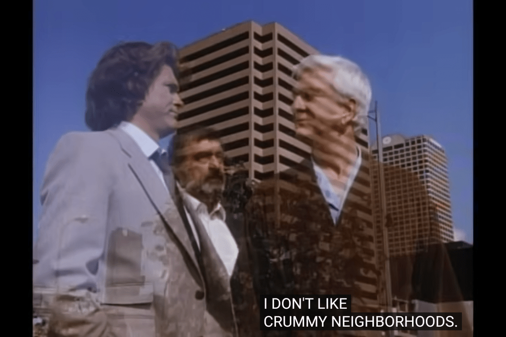 So, a guy named “R.R.” operating in the “Standard Oil” building: this looks like a play on “J.R.” from a soap airing at the same time as Highway. Although R.R. in this Highway is played by Leslie Nielsen, who had no ties to that series.