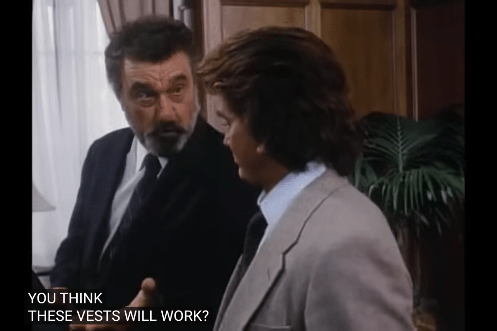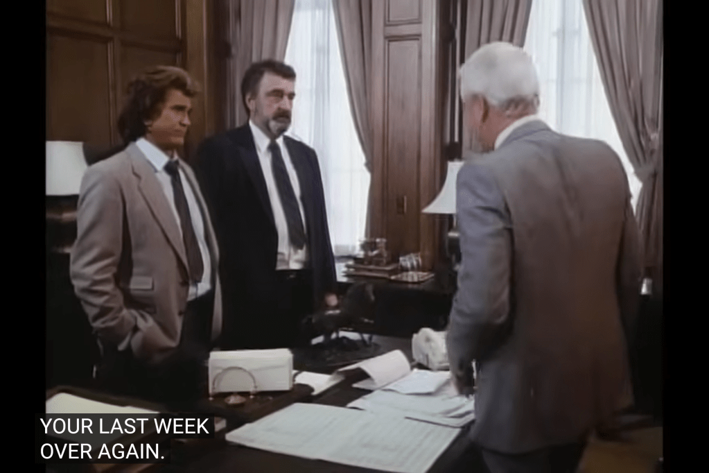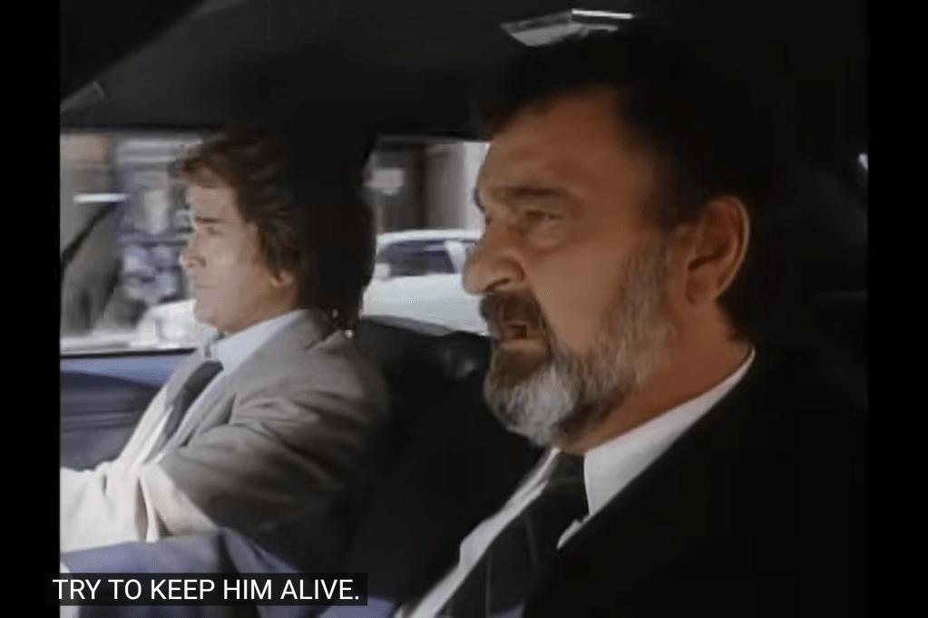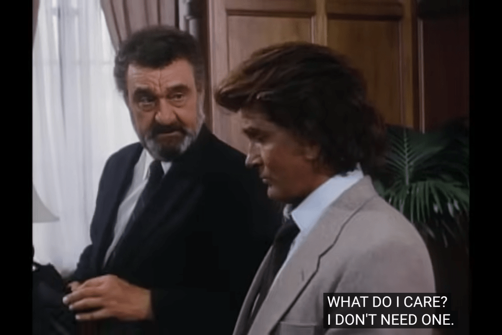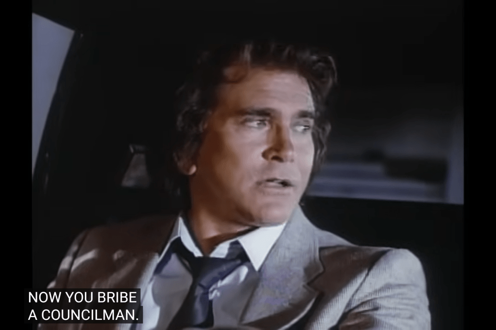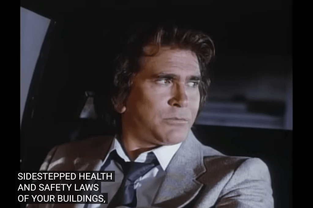 So, a guy named “R.R.” operating in the “Standard Oil” building: this looks like a play on “J.R.” from a soap airing at the same time as Highway. Although R.R. in this Highway is played by Leslie Nielsen, who had no ties to that series.