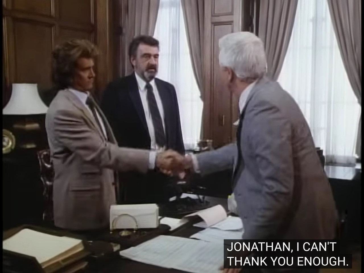 This gets quite ridiculous: it’s pretty hard to believe that Benson would so openly bribe everyone while Jonathan and Mark are standing right there. I mean, he doesn’t really know them—he literally just hired them.