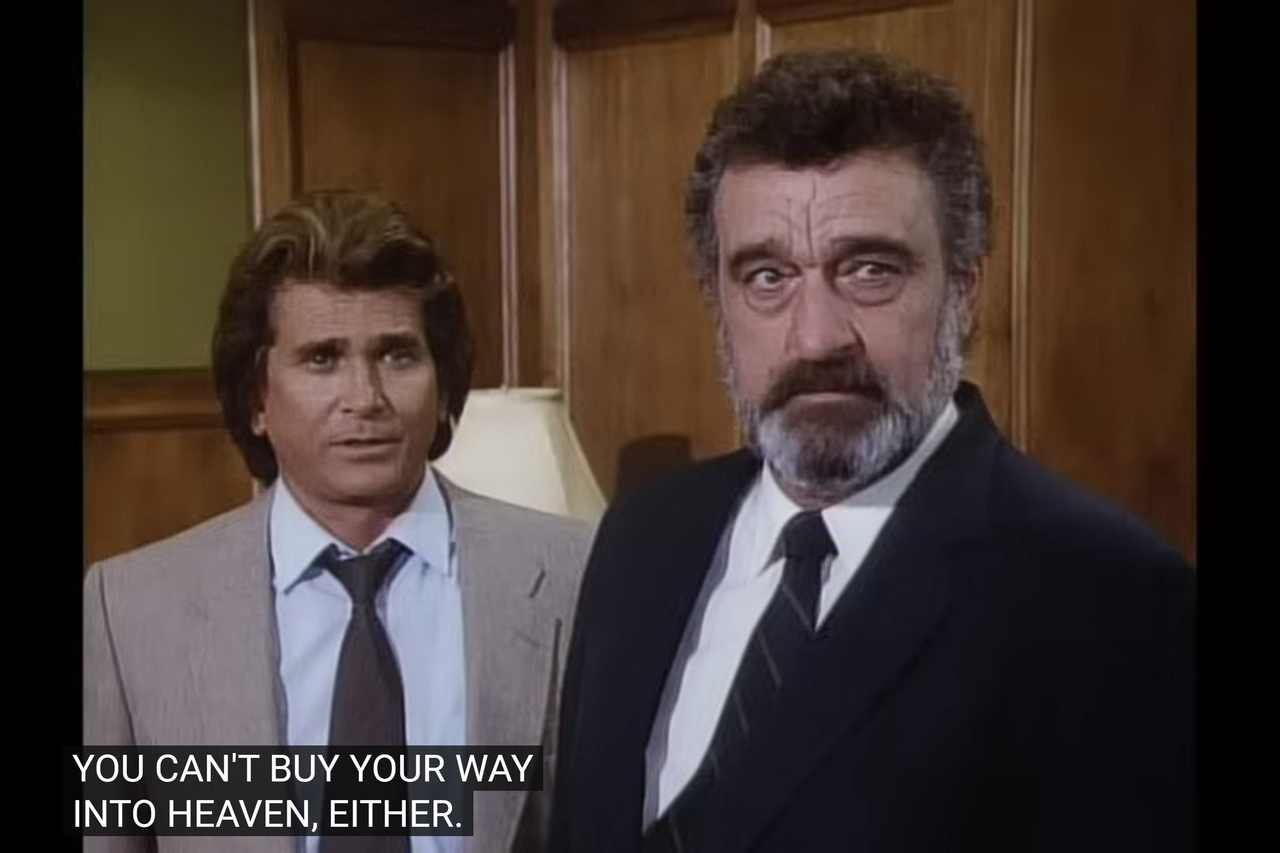 But again, just like they did with Eddy in the Christmas episode and Melvin Rich the banker, it’s basically exposition to prove the point: the episode had ten minutes to show that Benson is hopelessly corrupt, and there’s no way to help him.